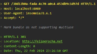 The browser caches the response, and subsequent requests for the same URL will not be sent to the URL shortening service. Instead, requests are redirected to the long URL server directly. Here’s an example using Insomnia REST Client: